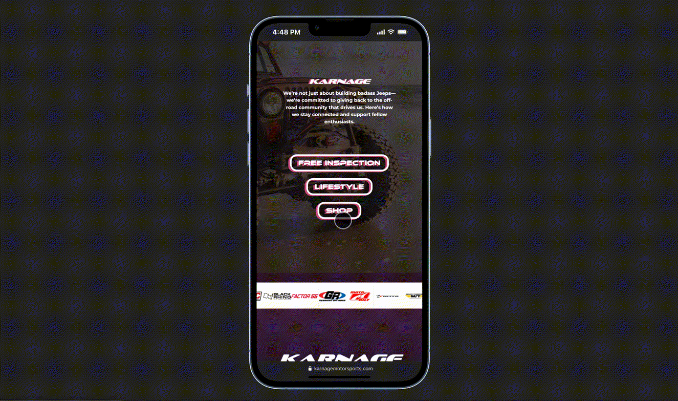 Karnage Motorsports came to us with a fragmented brand identity - Multiple logos lacking consistency, a generic red color scheme they weren't happy with, and a website that felt disconnected from their brand. Navigation was chaotic with buttons scattered randomly, and there was no clear way to engage their passionate automotive community.